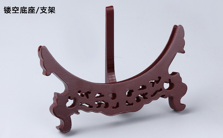 鏤空底座是牡丹瓷底座中比較常見(jiàn)的,造型類似于一團(tuán)云霧,將牡丹瓷托在上方,一般是醬紅色的木制品??蛻艨梢栽诘鬃恼孀远x文字,比如公司慶典、贈(zèng)與友人,畢業(yè)留念等。而且這種底座的高度較高,所以顧客在選購(gòu)的時(shí)候要注意一下高度。