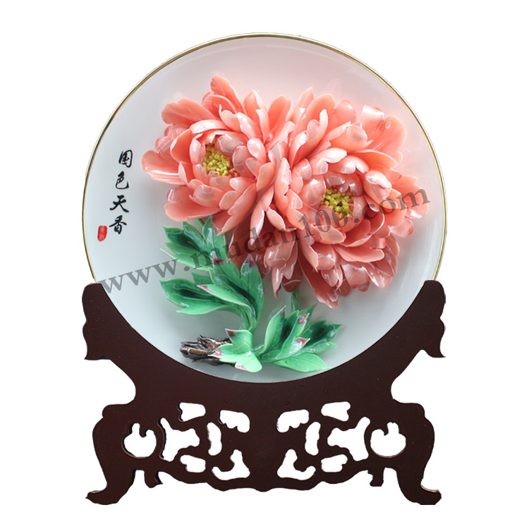 實(shí)物牡丹瓷采用了雙花朵設(shè)計,一住一次相互襯托,白色盤子+盤邊的金線,渾然天成,精美別致,裝飾客廳效果肯定很好看。